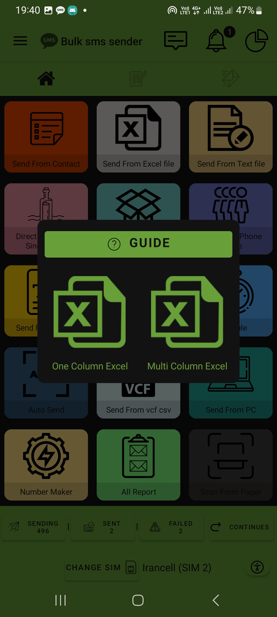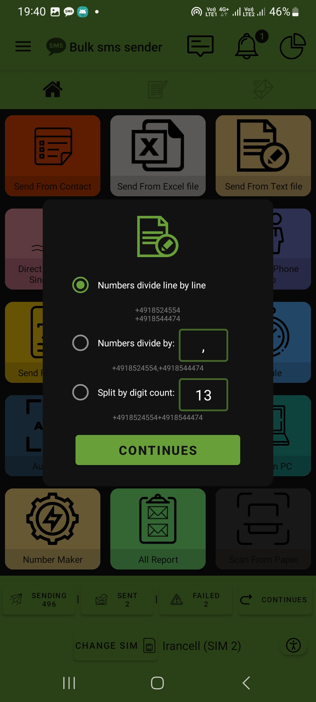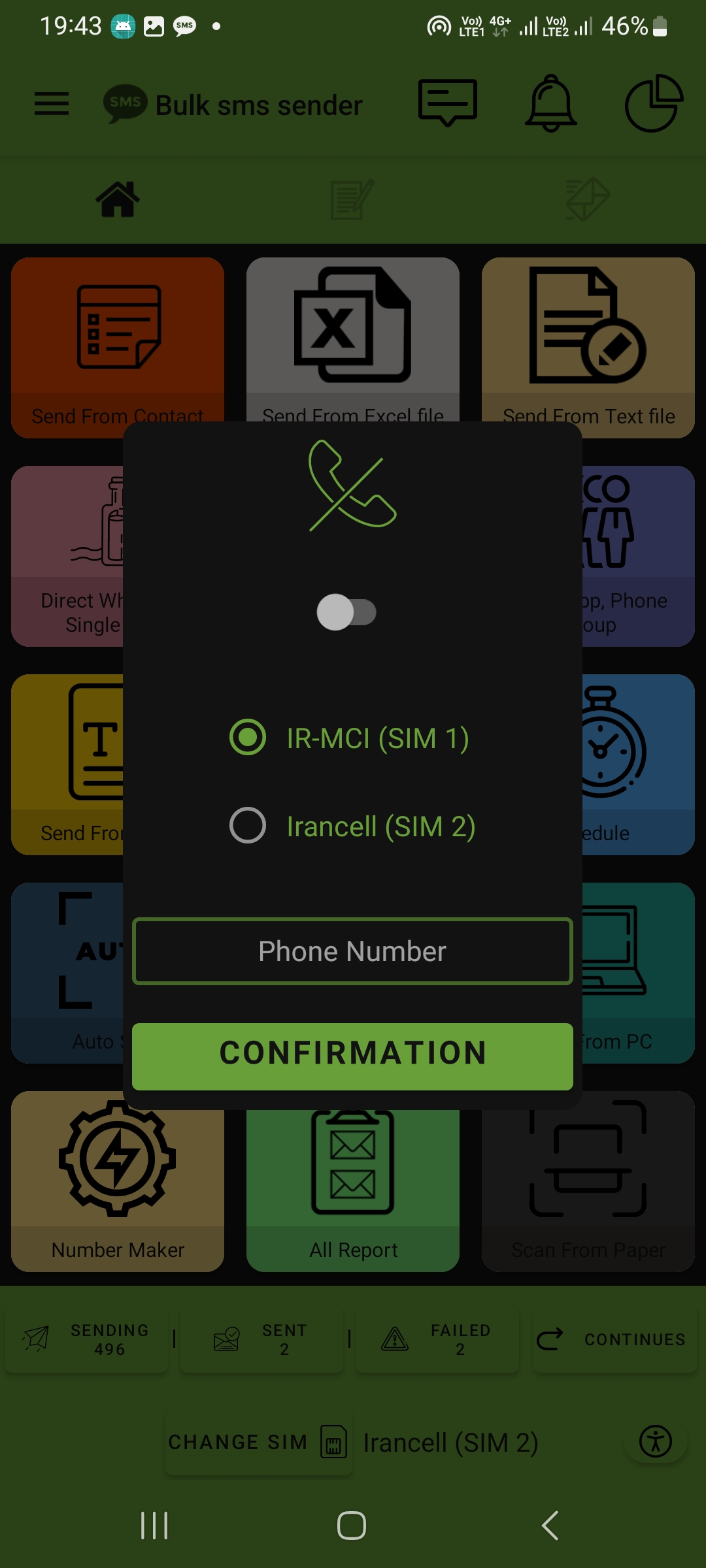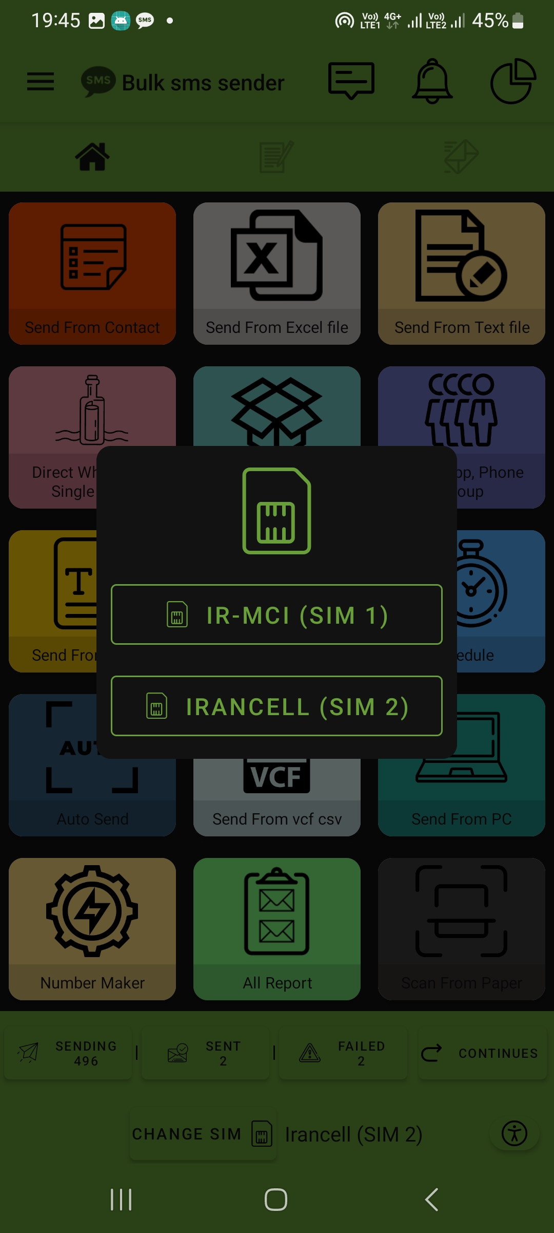 texts or rotate SIM cards while sending bulk SMS in the app.