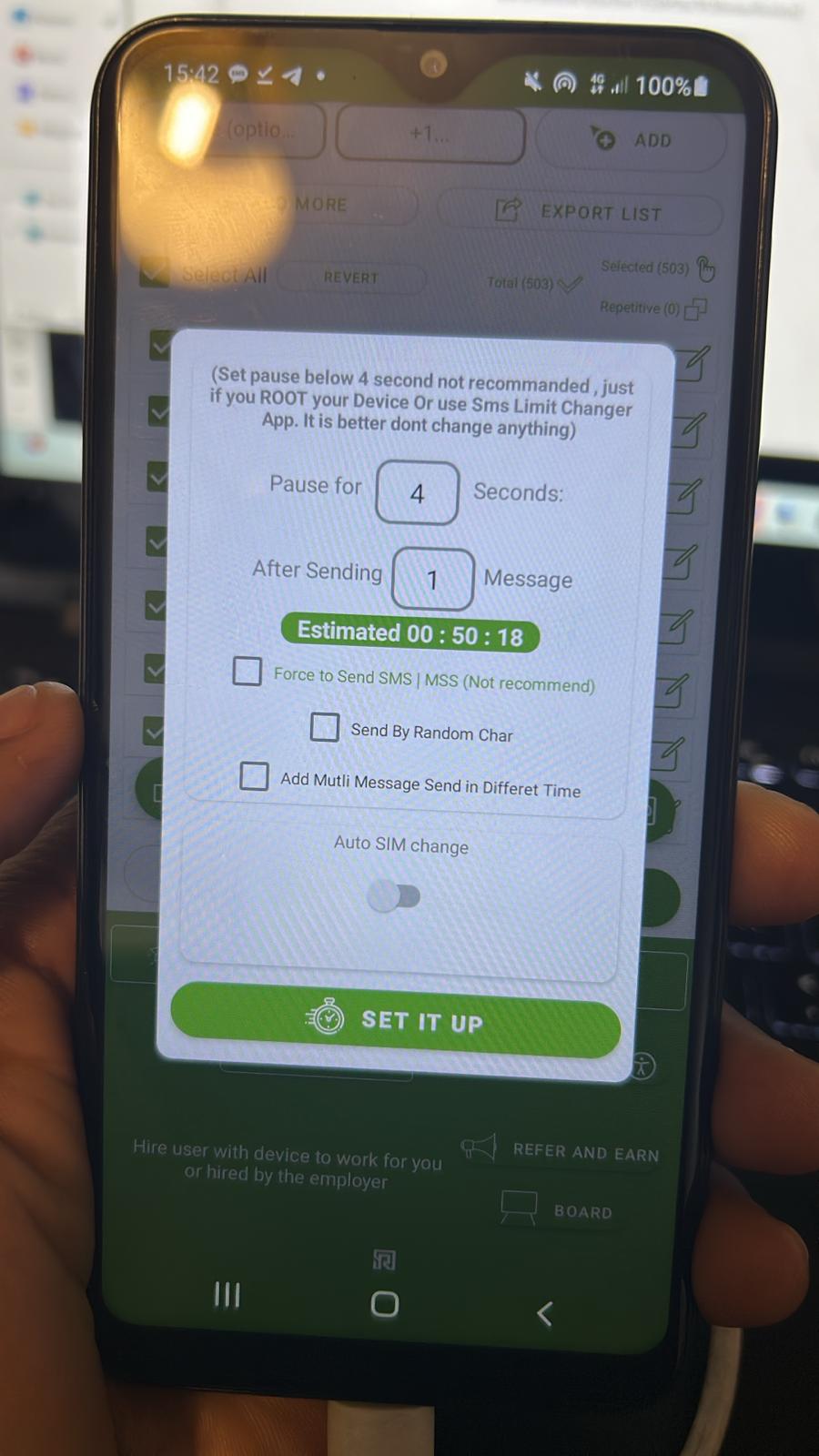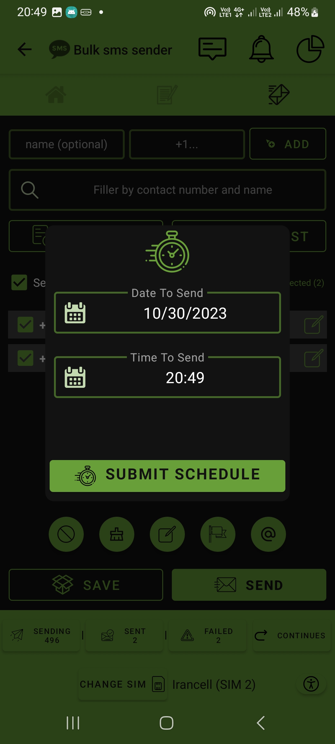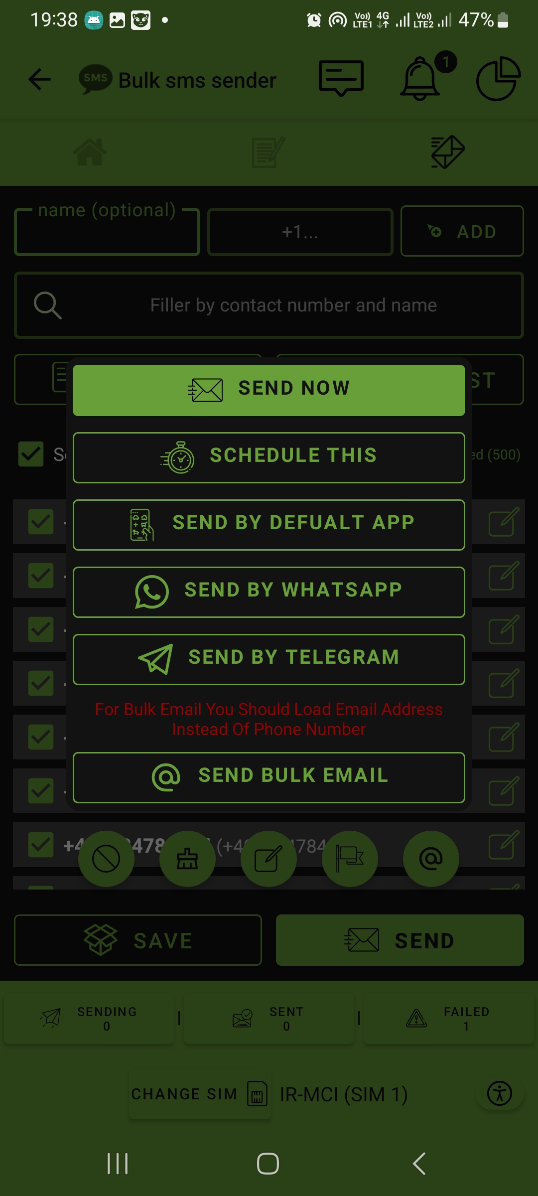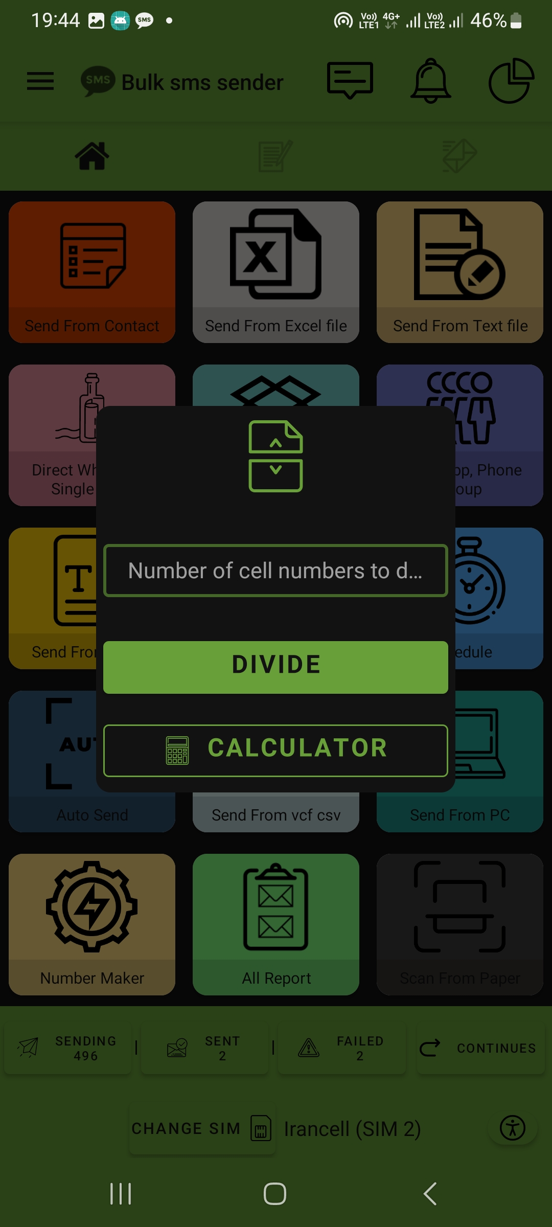 texts or rotate SIM cards while sending bulk SMS in the app.