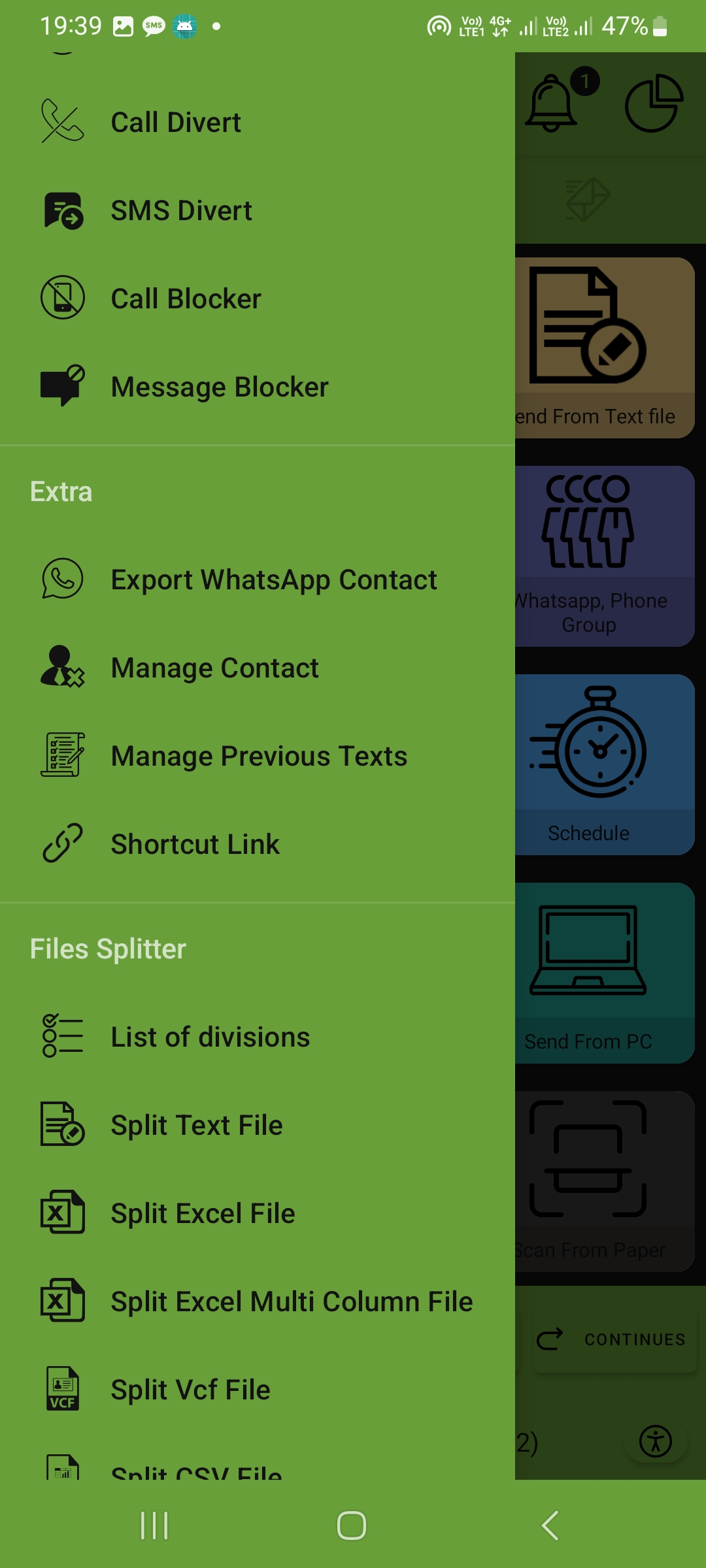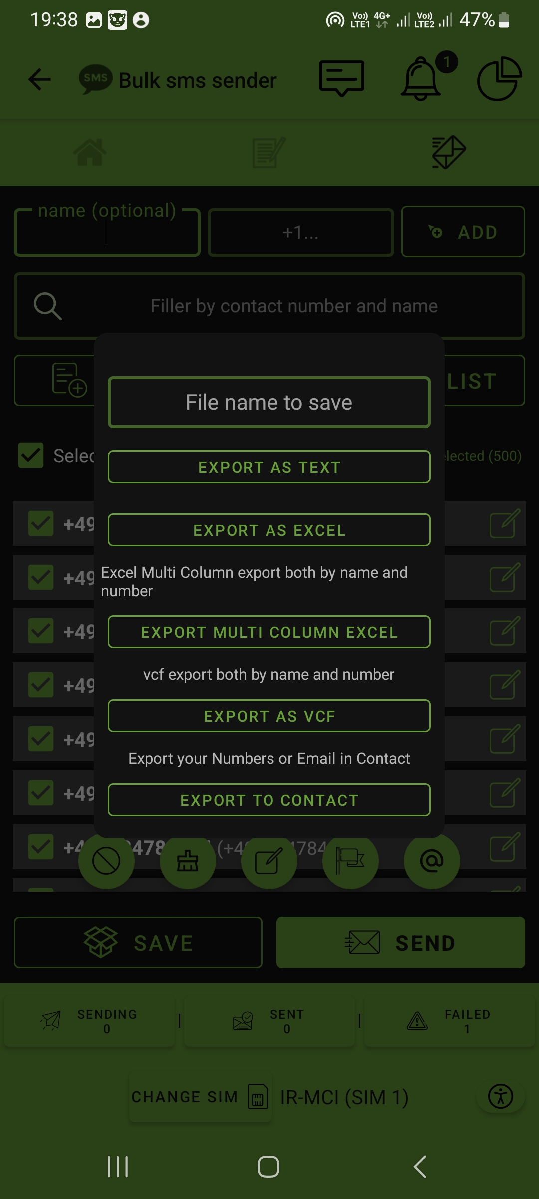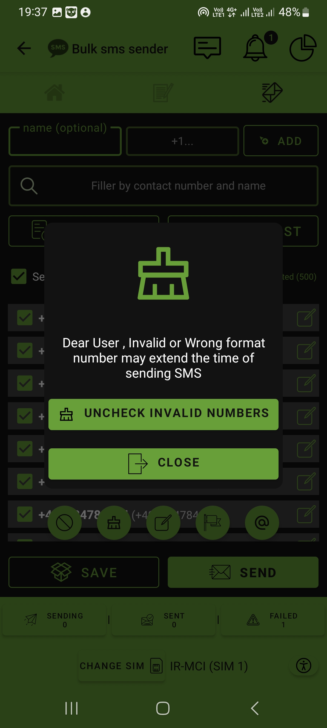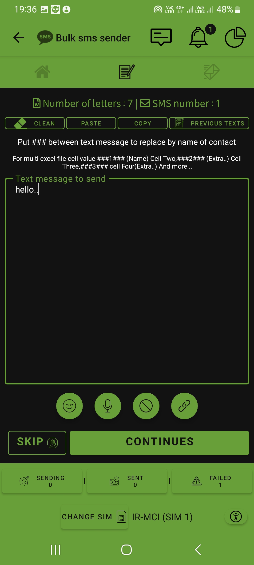 texts or rotate SIM cards while sending bulk SMS in the app.