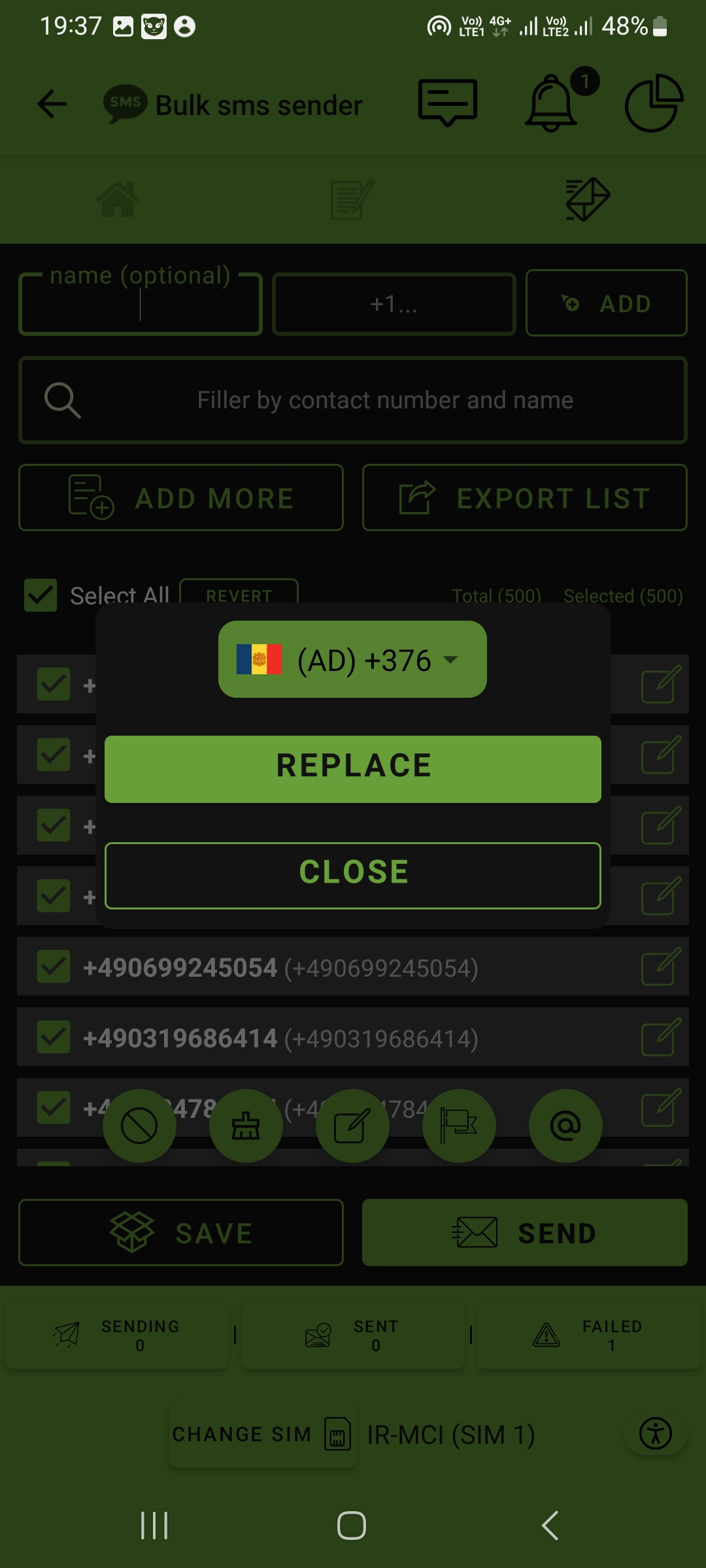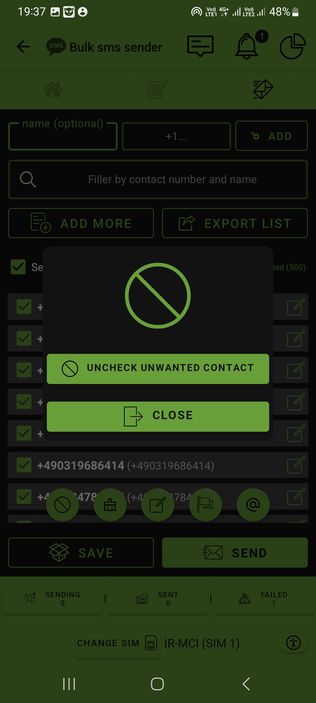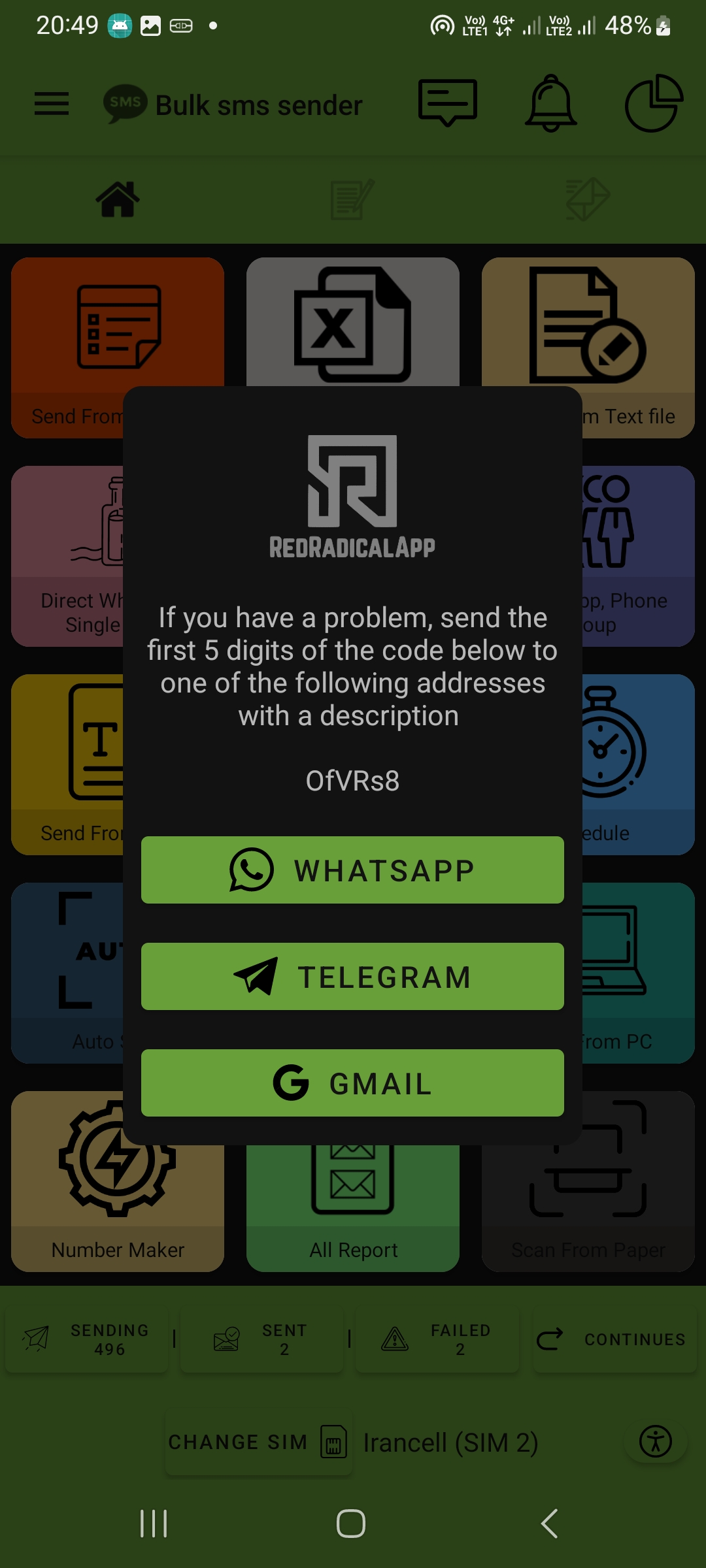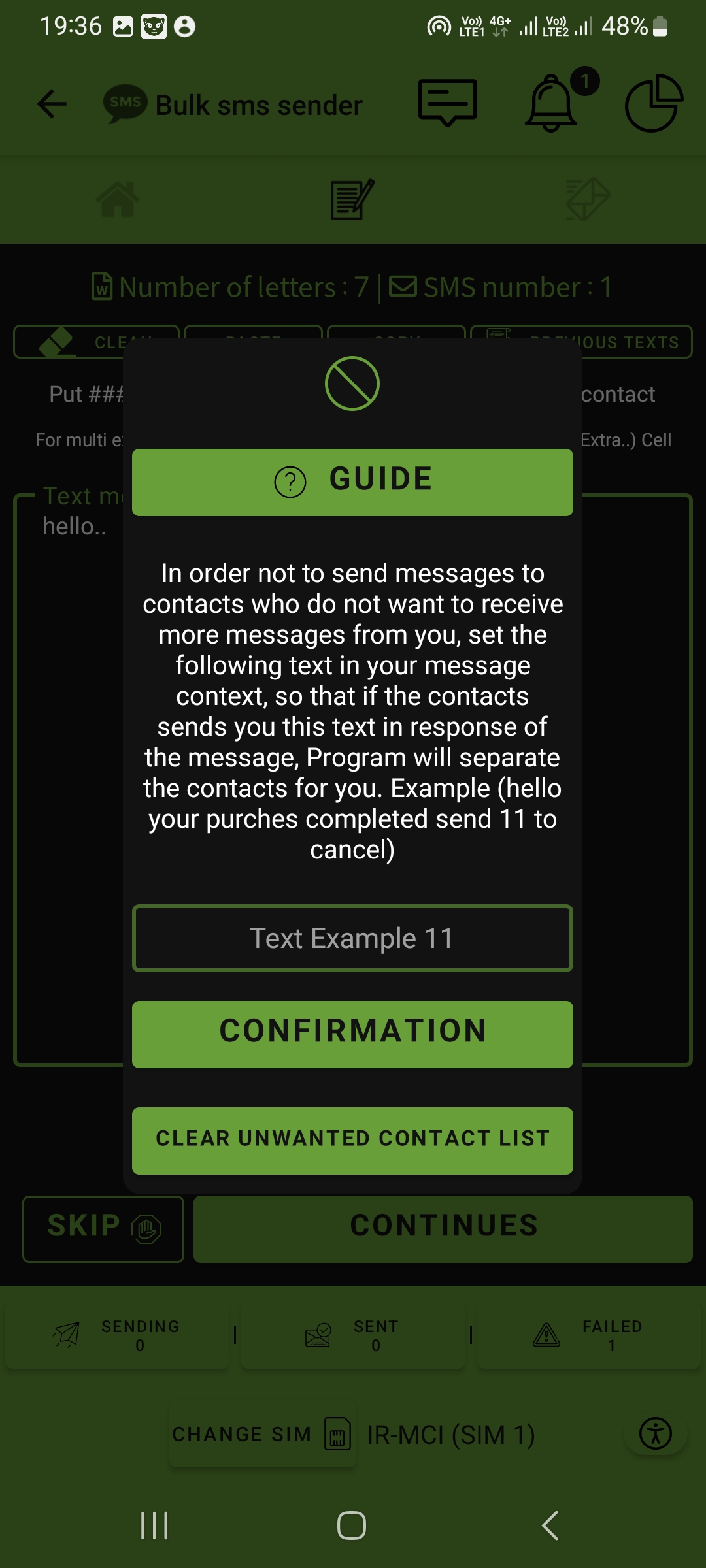 texts or rotate SIM cards while sending bulk SMS in the app.